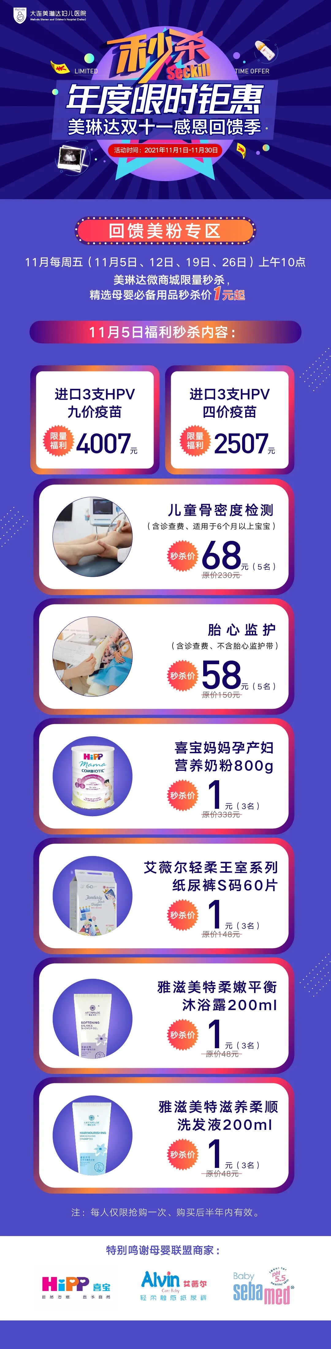 大连美琳达妇儿医院—让生命更美妙【官方网站】_超划算!美琳达双十一感恩回馈季,年度限时钜惠秒杀价1元起!_大连美琳达妇儿医院—让生命更美妙【官方网站】